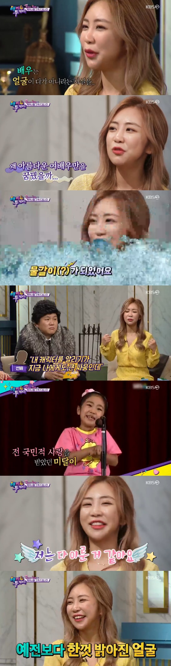 이어 "하지만 4~5년 전부터 미달이에게 감사하게 생각한다. 회사에 다니면서 좋은 사람들을 만났다. 물갈이됐다. 오랜 시간 연기를 한 선배가 '내 캐릭터를 알리기가 지금 나에게도 큰 싸움인데 넌 그걸 이미 이루었다'고 말해줬다"며 인생을 돌아보게 한 선배의 조언을 전했다.