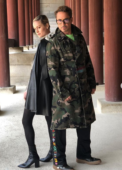 16일 로버트 다우니 주니어는 자신의 인스타그램에 영화 '어벤져스: 엔드 게임'에 함께 출연한 브리 라슨과 함께 경희궁에서 촬영한 사진을 공개했다.