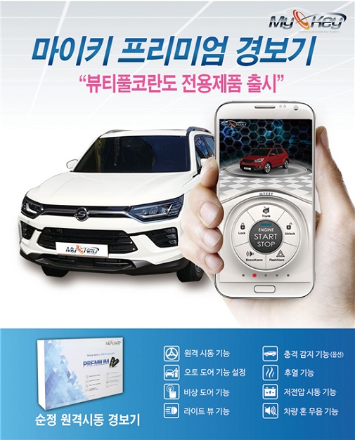 이번 출시로 뷰:티풀 코란도 차주들도 오토도어, 원격시동, 후열 등 다양한 기능을 제공하는 순정형 원격 시동 경보기 마이키 프리미엄을 사용할 수 있게 됐다.