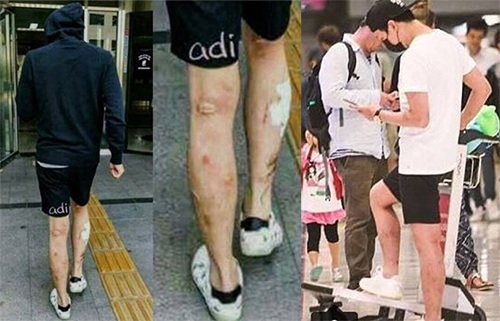 공개된 사진은 필로폰 투약 인정하기 전 팬들에 의해 촬영된 것으로, 박유천의 손과 다리에는 손으로 긁은 듯한 심한 상처들이 있다.