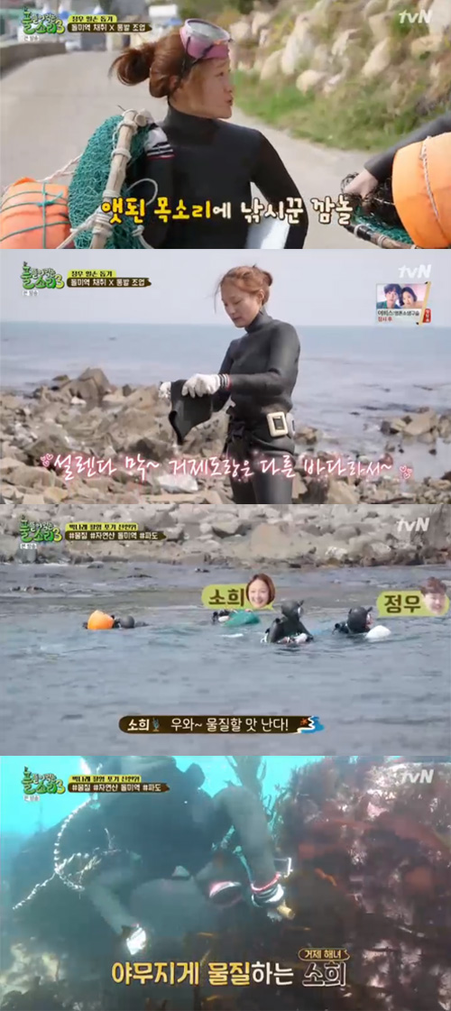 이날 거제도 최연소 해녀 진소희는 고정우, 박나래, 양세찬 등과 물질을 하기 위해 바다로 향했다. 고정우는 물질 전 울산의 질 좋은 미역을 자랑했다. 진소희는 시작 전부터 "설렌다"면서 "거제 바다 말고 다른 바다는 처음이라 떨린다"고 좋아했다.