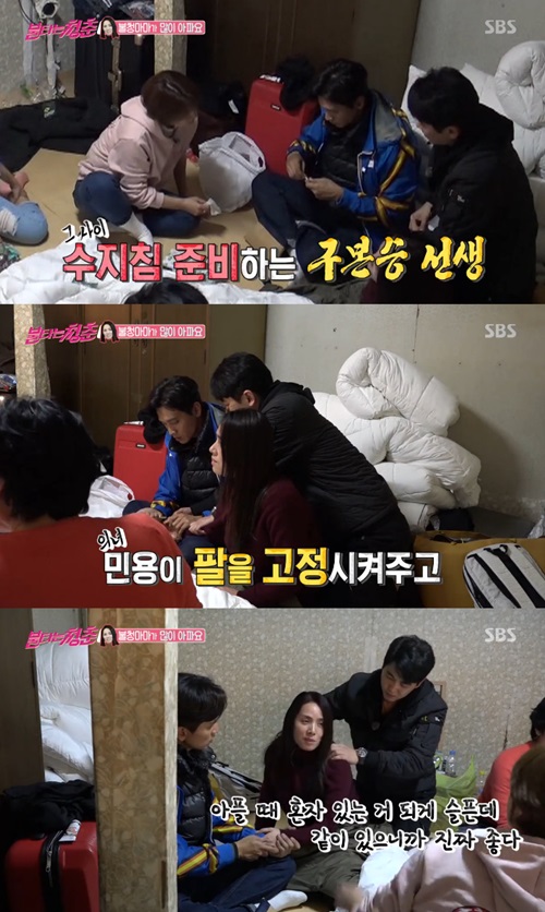 이야기를 나누던 중 양수경이 체하자 구본승이 수지침을 들고 나타났다. 또 최민용은 양수경의 등허리를 두들기는 등 혈액순환을 위해 팔과 어깨 등을 주물렀다. 양수경은 "아플 때 혼자 있는 게 되게 슬픈데 같이 있으니까 진짜 좋다"라며 동생들에게 고마운 마음을 표현했다.