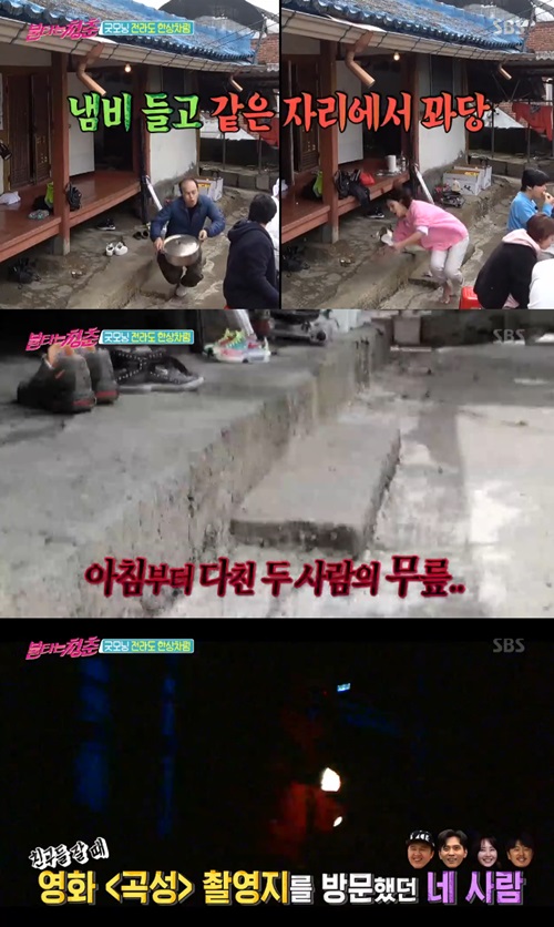 아침 식사를 본격적으로 시작하자 이경헌은 뜸들이던 냄비 밥을 가져오던 중 떨어트렸다. 이광규와 똑같은 자리에서 넘어진 것. 전날 영화 '곡성' 촬영지를 다녀온 사람만 넘어지자 김부용은 "다음은 내 차례야?"라고 너스레를 떨었다.
