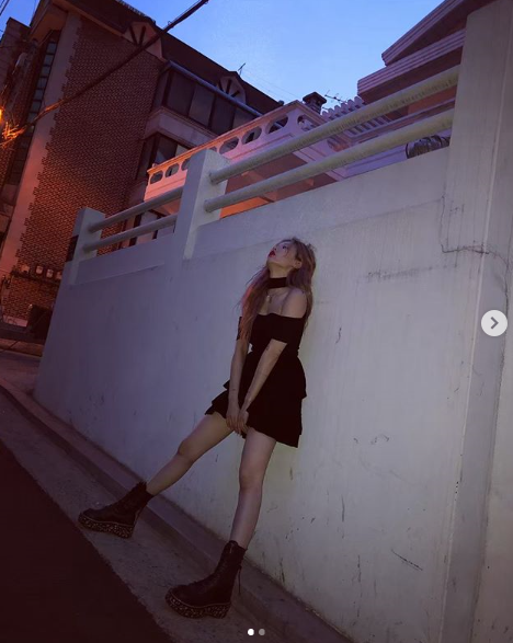 공개된 사진 속 현아는 골목길에서 블랙 오프숄더 원피스를 입고 다양한 포즈를 취하고 있다. 날씬한 어깨선과 완벽한 각선미가 그의 성숙미를 부각해준다.