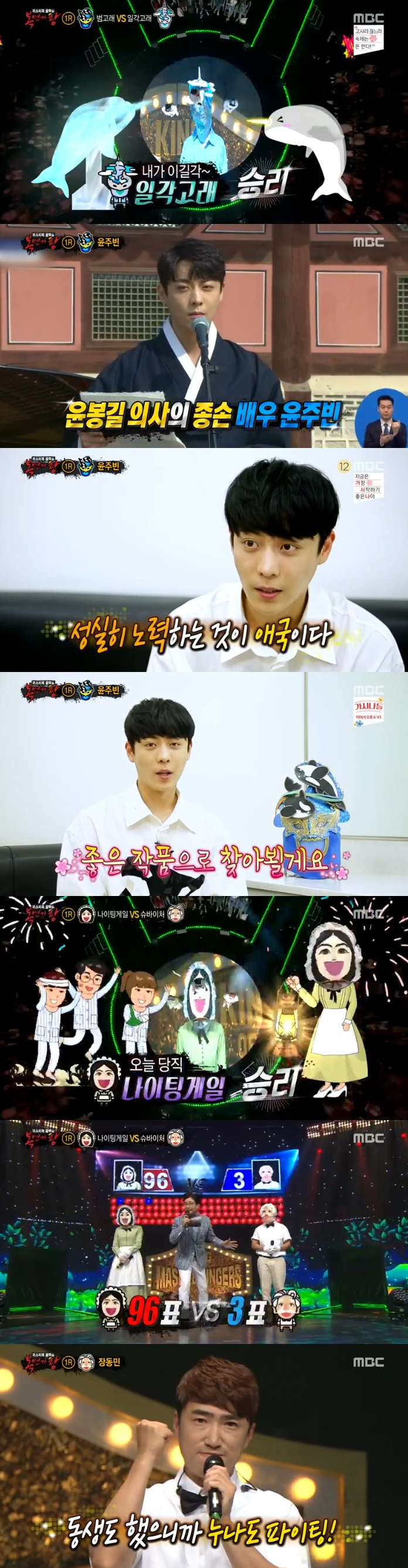 [스포츠서울 조효정 인턴기자]'복면가왕' 1라운드에서 '교통정체' '두물머리' '일각고래' '나이팅게일'이 2라운드에 진출했다.