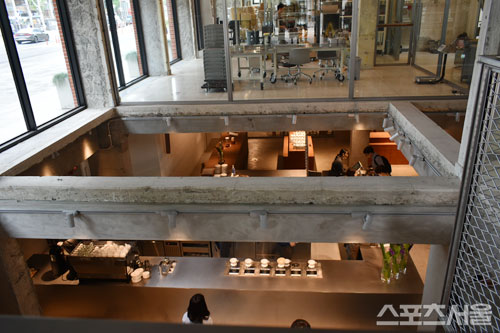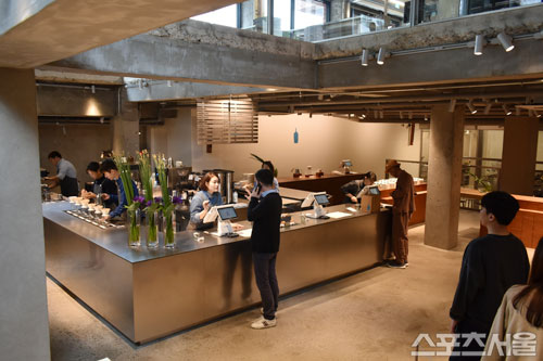 실제로 본 블루보틀은 혹평과 달리 따뜻한 미니멀리즘이 느껴졌다. 통유리로 된 로스터리와 개방형 아트리움에서는 '환대'의 철학을, 노출콘크리트와 스테인리스 커피바, 우드 테이블의 조화에서는 감성을 엿볼 수 있었다. 다만 천장 곳곳 적나라하게 보이는 절단면은 적잖이 당황스러웠다. 미국 블루보틀 유경험자인 Y기자 역시 너무 성수동스러워 블루보틀만의 느낌이 덜한 것 같다고 평했다.