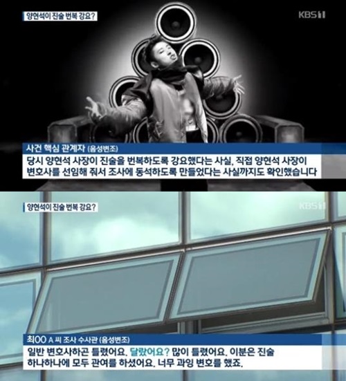 이날 KBS1 '뉴스9'은 YG엔터테인먼트 양현석 대표가 비아이와 관련한 수사에 개입했다는 가능성을 제기했다. 해당 보도에 따르면 사건 핵심 관계자는 "당시 양현석 사장이 진술을 번복하도록 강요했다는 사실, 직접 양현석 사장이 변호사를 선임해 줘서 조사에 동석하도록 만들었다는 사실까지도 확인했다"고 밝혔다.