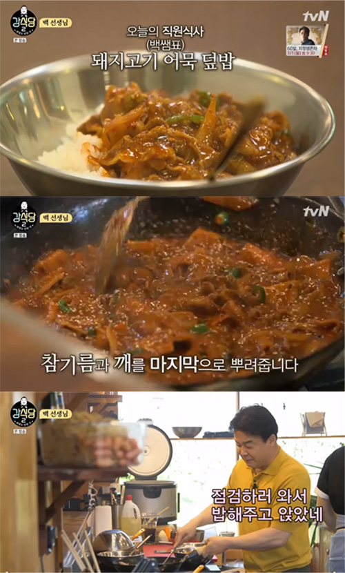 또한 백종원은 밥을 제대로 챙겨먹지 못한 멤버들을 위해 직접 요리에 나섰다. 고기와 각종 야채를 볶고 고추가루, 간장, 설탕, 파 기름, 어묵 등을 넣어 특별한 제육볶음을 완성했다. 백종원은 "점검해주러 왔다가 밥해주고 있네"라고 웃었다.