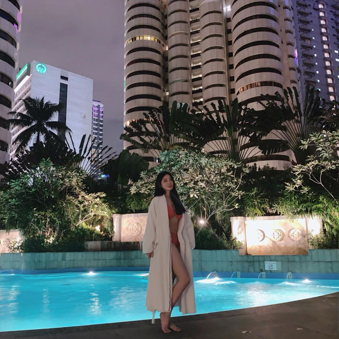 공개된 사진 속 그는 말레이시아의 한 풀장 앞에서 수영복을 입고 사진을 찍고 있다. 명불허전 몸매가 눈길을 사로잡는다.