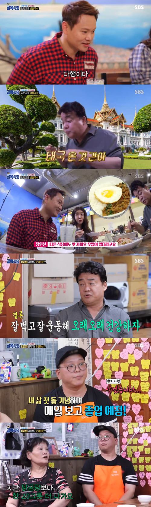백종원이 찾아간 첫 번째 식당은 배우 김민교가 운영하는 레스토랑이었다. 김민교는 앞서 정인선과 함께 '골목식당'에 출연한 바 있다. 두 사람은 당시 식당 '사와디밥'을 오픈했고 김민교는 이후 같은 이름의 레스토랑을 차려 운영해온 것.