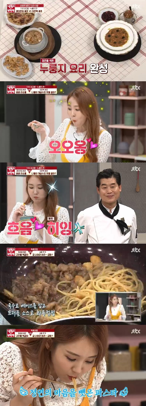 이연복 셰프의 게살 스프를 먹은 뒤에는 "셰프님 너무 얄밉다. 맛살로 어떻게 이런 맛을 내냐"며 만족감을 드러냈다. 누룽지를 갈아 넣은 누룽지전과 디저트 시식도 계속됐다. 오정연은 연신 "맛있다"를 연발했다. 박빙의 대결 끝에 승리는 레이먼 킴에게 돌아갔다.