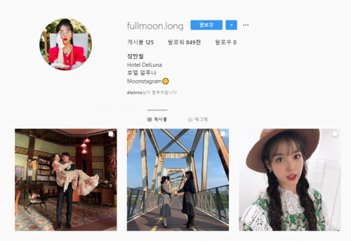'호텔 델루나'에 대한 이지은의 정성은 이에 그치지 않았다. 그는 'fullmoon.long'이라는 인스타그램 계정을 개설해 장만월이 실제로 해당 계정을 운영하는 듯 한 느낌을 받을 수 있도록 직접 사진과 글을 게재했다. 이지은은 매 방송이 끝날 때마다 그날 방송에서 화제가 됐던 장면, 인물들의 사진을 직접 업로드했으며 센스있는 코멘트를 '장만월스럽게' 작성해 시청자들의 몰입을 도왔다.