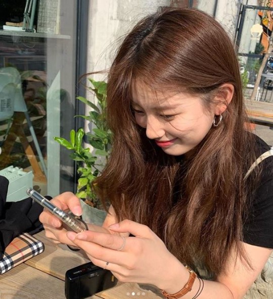 공개된 사진 속 수지는 카페 야외 테라스에 앉아 핸드폰을 바라보며 미소를 짓고 있다. 한쪽 손으로는 턱을 괴고 청순한 미모로 시선을 집중시켰다.