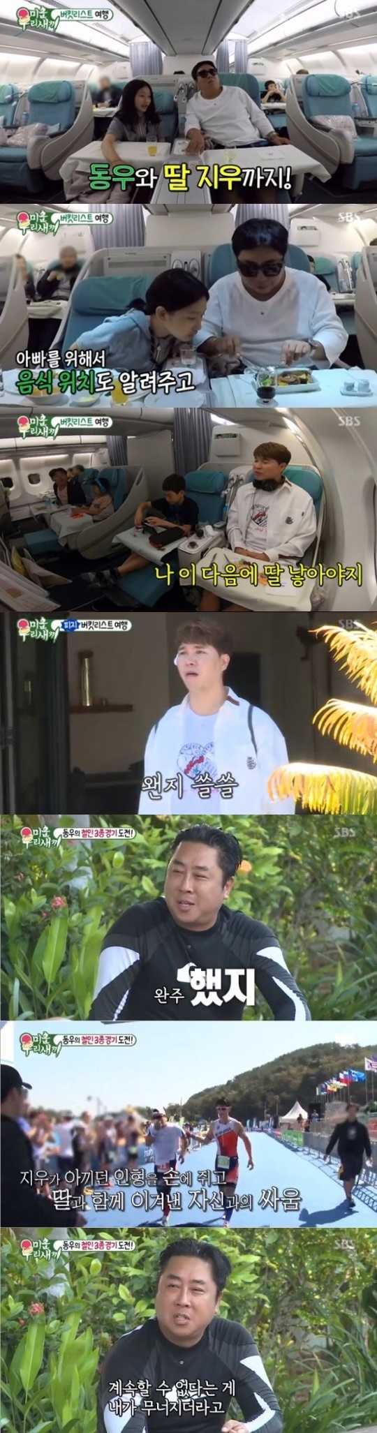 숙소를 둘러본 뒤 이들은 숙소 수영장에서 물놀이를 즐겼다. 이동도 수영 실력을 뽐냈다. 그러면서 이동우는 철인 3종경기에 도전한 일화를 전했다.