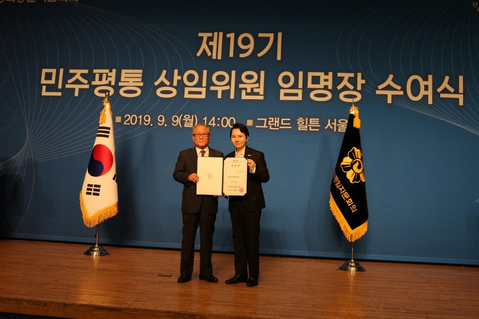 임형주는 문재인 대통령이 조국 법무부 장관 후보자를 포함 총 6명의 장관 및 장관급 후보자에 대한 임명을 재가해 임명식을 거행했던 지난 9일 오후 2시 서울 그랜드힐튼호텔 컨벤션센터에서 별도로 개최된 '제19기 민주평통 상임위원 임명식'에 참석해 정세현 수석부의장으로부터 직접 임명장을 받았다.