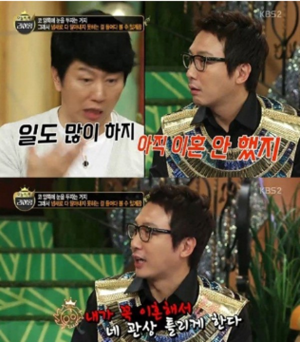 이에 탁재훈은 "내가 꼭 이혼해서 그 관상 틀리게 한다. 꼭 이혼하겠다"고 말해 출연진의 웃음을 자아낸 바 있다. 이날 놀란 강호동은 "두 분이 정말 친하기 때문에 이런 말을 할 수 있었다"며 말을 수습하고 나섰다.