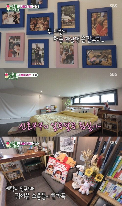 다락방 같은 느낌을 주는 2층은 신혼부부의 침실이 마련돼 있다. 곳곳에는 캐릭터 침구류와 인형이 놓여 있어 알콜달콩한 신혼집 풍경이 그려졌다.