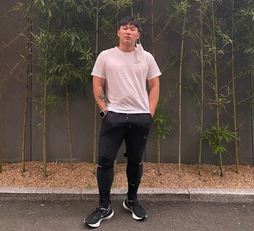 스윙스는 31일 인스타그램에 사진 한 장을 게재했다. 이어 'Beastmode''겨우 몸푸는 중 쟤넨 외쳐 end', '너한테 왜져 난 나한테도 지지 않아' 문구의 해시태그를 달았다.
