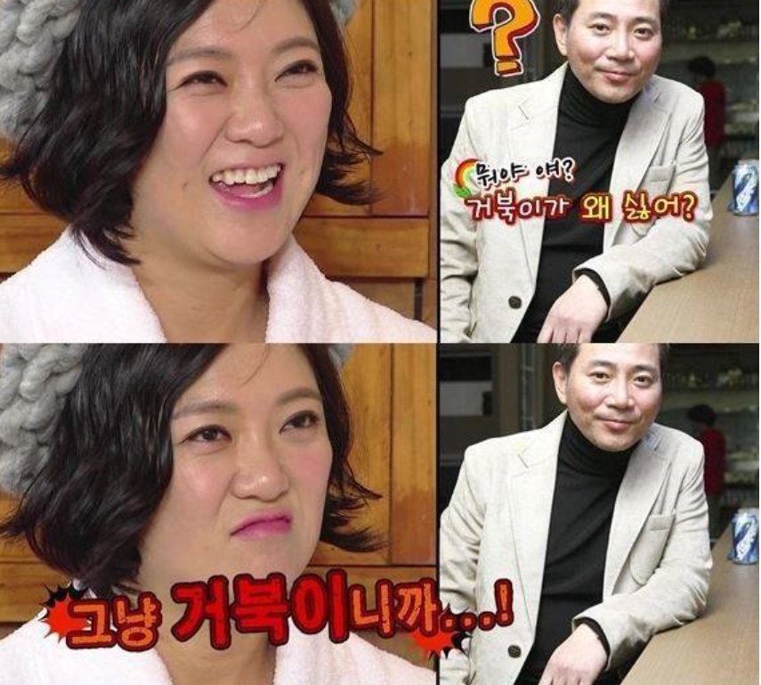 김숙의 대답에 개그맨실의 모든 사람들이 입을 다물지 못했고, 이봉원이 "거북이가 왜 싫어?"라고 하자 김숙이 "거북이니까"라고 답해 모두를 멘붕에 빠뜨렸다고.