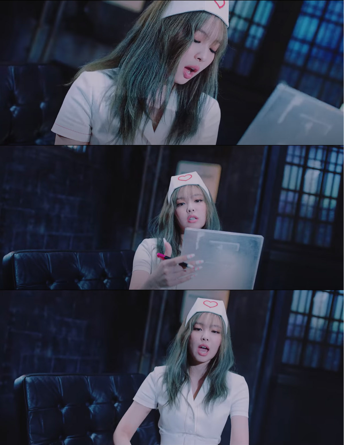 문제는 간호사의 복장. 제니는 무릎 위로 올라오는 짧은 원피스 타입의 의상에 빨간 하이힐. 하트가 그려진 간호사모를 썼다. 남성들의 '제복 판타지' 속에 존재하는 간호사를 그대로 구현해놓은 듯한 모습이었다.