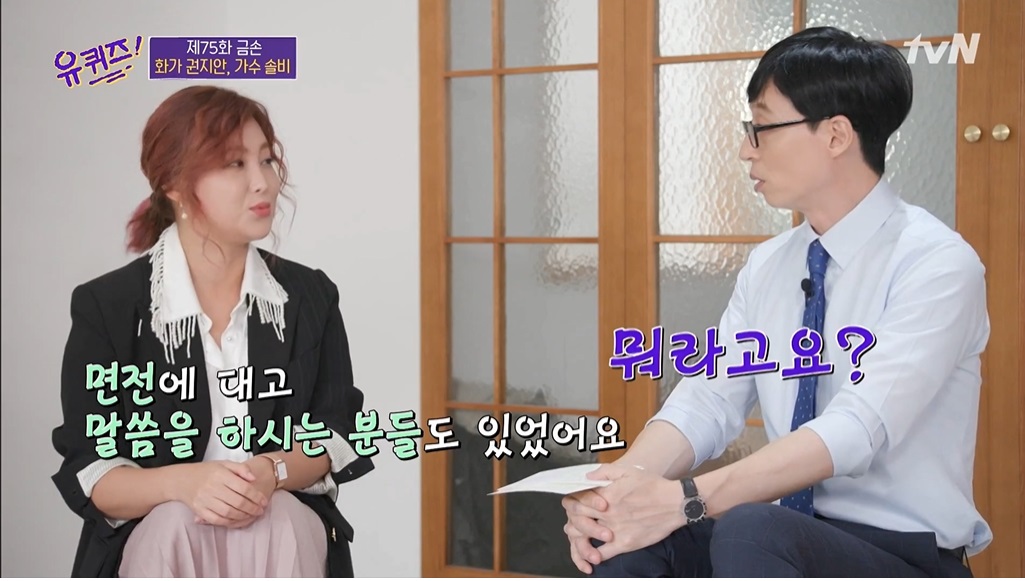 논란의 발단은 앞서 지난 7일 방송된 tvN'유퀴즈 온 더 블럭'의 '금손' 특집에 출연한 솔비의 발언이었다. 이날 방송에서 솔비는 화가 권지안으로 살고있는 근황을 공개했다. 조세호는 "처음 그림을 그린다고 할 때는 주변에서는 '에이 뭐야' 그러지 않았냐"고 물었다.