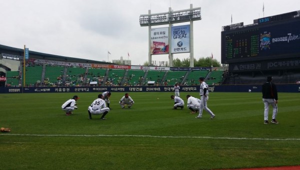 잠실구장 익사이팅존에서 바라본 그라운드. 출처|온라인커뮤니티