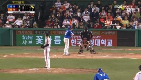 대전 한밭구장 포수후면석. 출처|MBC Sports+ 중계화면 캡처