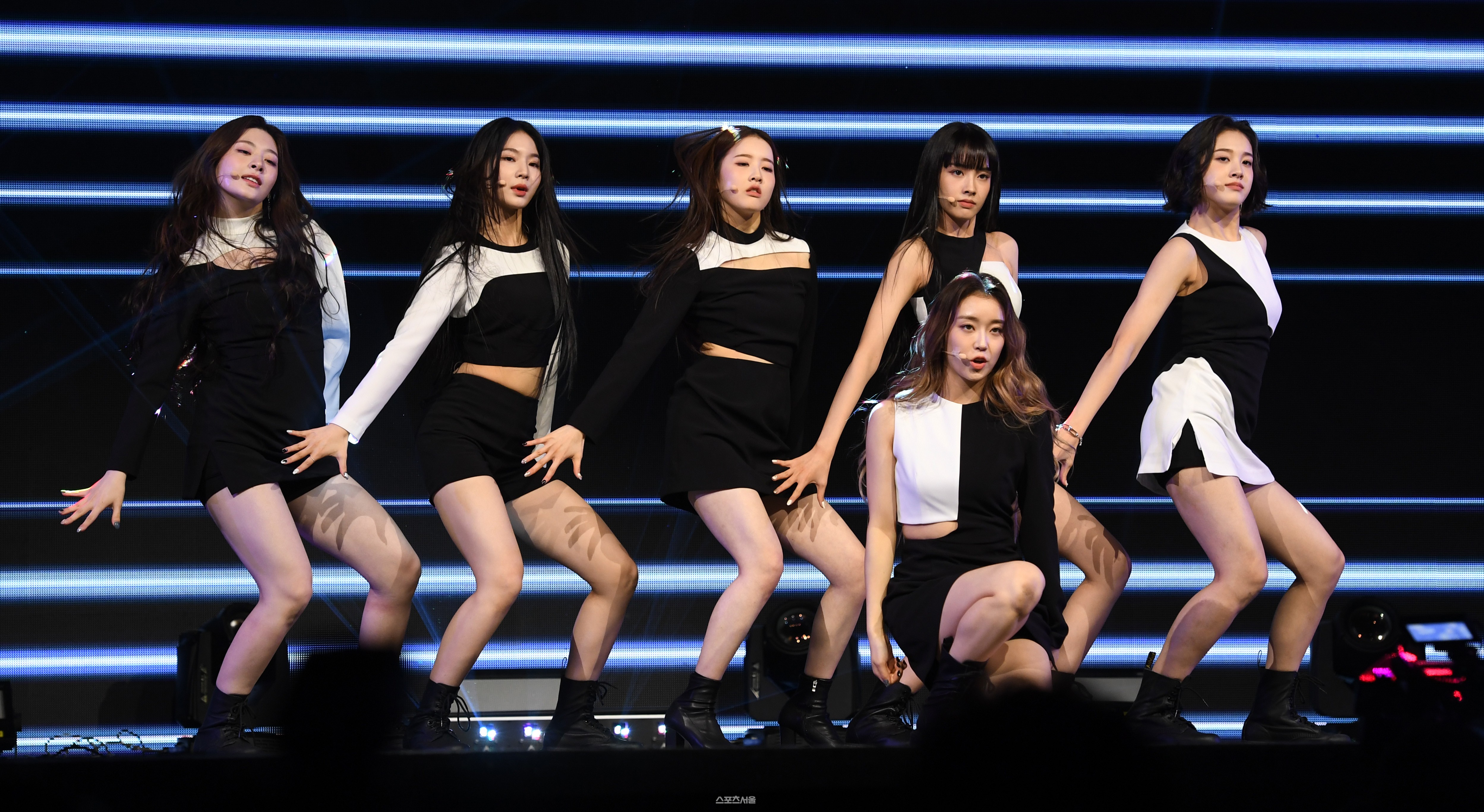 신인 걸그룹 스테이씨(STAYC)가 12일 광진구 예스24 라이브홀에서 진행된 데뷔 싱글 'Star To A Young Culture' 발표 쇼케이스에서 취재진을 향해 포즈를 취하고 있다.