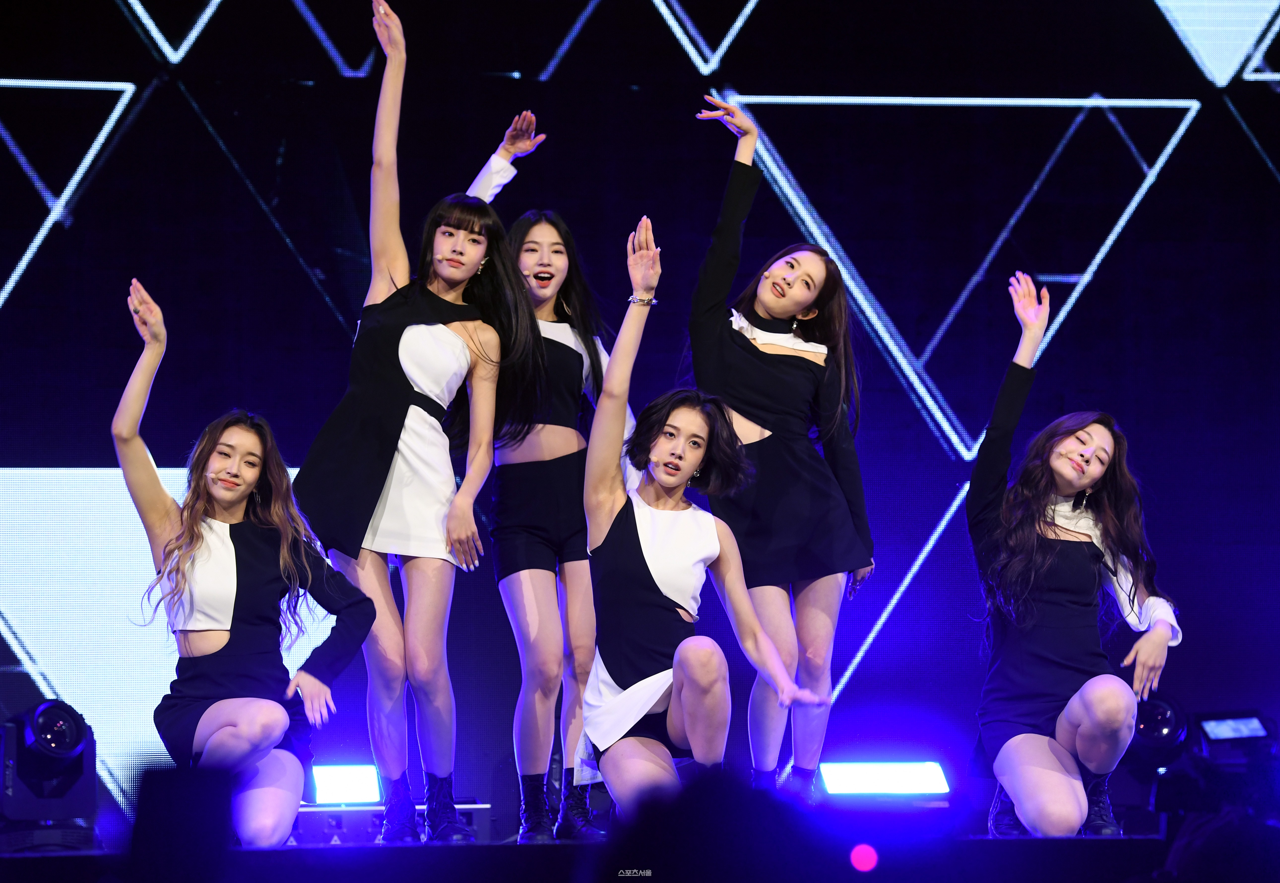 신인 걸그룹 스테이씨(STAYC)가 12일 광진구 예스24 라이브홀에서 진행된 데뷔 싱글 'Star To A Young Culture' 발표 쇼케이스에서 타이틀곡 '소 배드' 무대를 선보이고 있다.