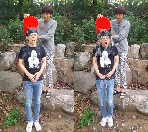 유재석에게 얼음물을 붓는 이광수. 출처 | 이광수 페이스북 영상 캡처