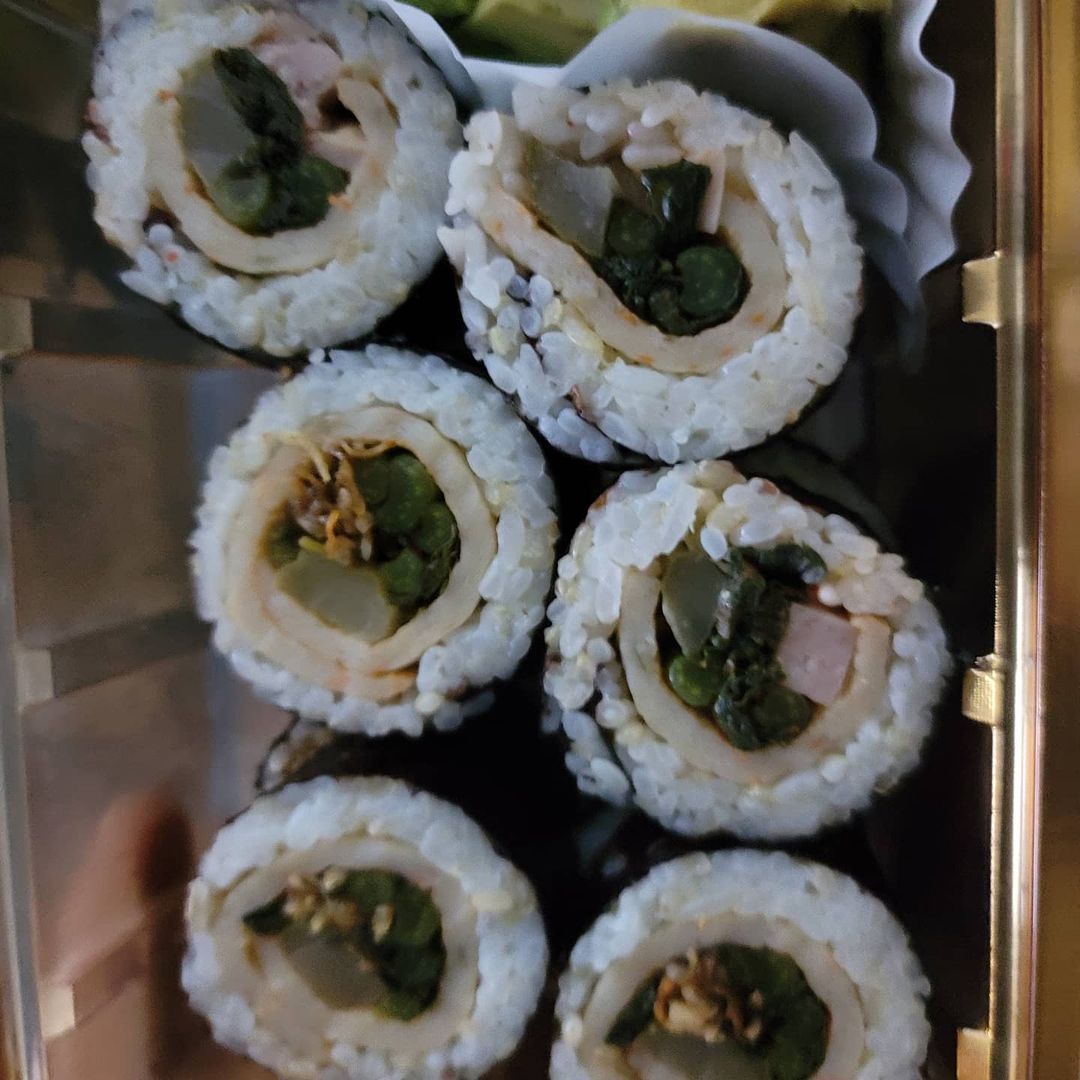 이에 신애라는 "그야말로 갑자기 싼 막김밥ㅎ 맛나게 먹어줘서 감사감사. 점심도시락 1교시 끝나고 많이 먹어본 솜씨. 점심땐 어쩔ㅋ"이라며 먹성 좋은 남편을 걱정했다.