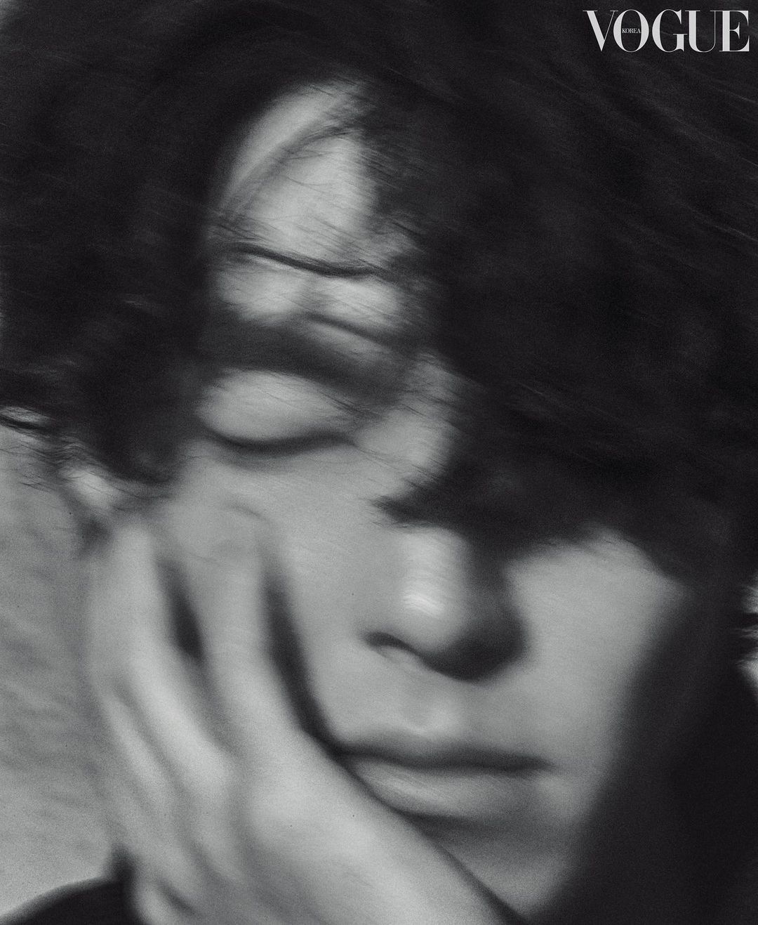 바람에 흩날리는 듯한 웨이브펌에 얼굴살이 살짝 빠져 더욱 우수에 찬 모습이었다.