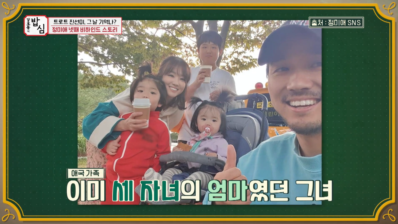 23일 방송된 '밥심'에서는 여성 트로트 트로이카 송가인, 정미애, 홍자가 출연해 고생스럽던 무명시절과 현재에 이르기까지를 구수한 입담으로 털어놨다. 출산을 3주 앞두고 마지막 스케줄이었던 SBS플러스 '강호동의 밥심(이하 밥심)'에 출연한 정미애는 녹화 도중 가진통을 호소해 제작진을 긴장시켰다.