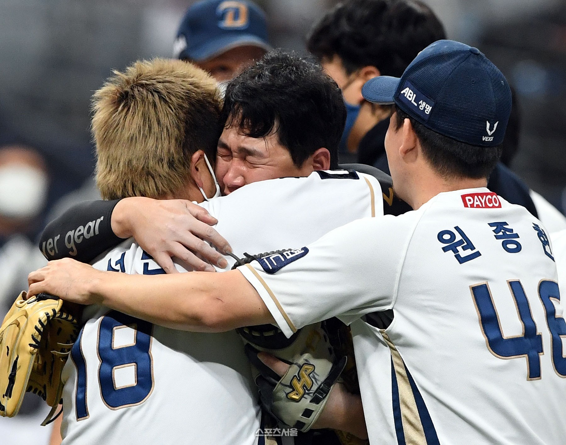 그런데 마무리 원종현과 안방마님 양의지는 수평으로 공중 조우했다.