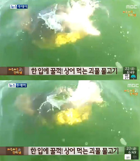 미국 '허핑턴포스트'는 20일 "최근 플로리다주 한 해안에서 대형 물고기 골리앗 그루퍼(Goliath Grouper)가 수면 위로 올라와 상어를 잡아 무는 순간이 영상에 잡혔다"고 보도했다.