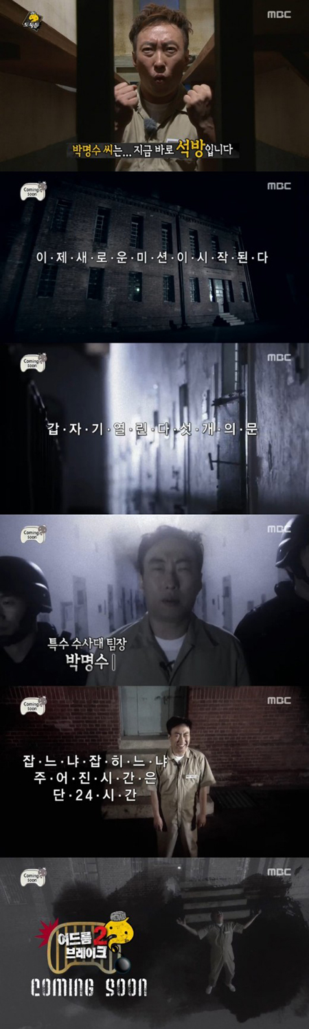 물고 물리는 퀴즈문제 풀이에 박명수가 최종승자가 됐고 감옥에서 석방되는 쾌거를 이룩했다. 이번 특집은 '여드름 브레이크 시즌2'로 이어질 예정이다. 석방된 박명수가 수사 팀장이 되서 감옥에서 탈옥한 남은 다섯 멤버들을 추격한다. 쫓기는 멤버들은 수사팀 뿐 아니라 국민의 눈을 속이는 추격전을 예고해 기대감을 높였다.