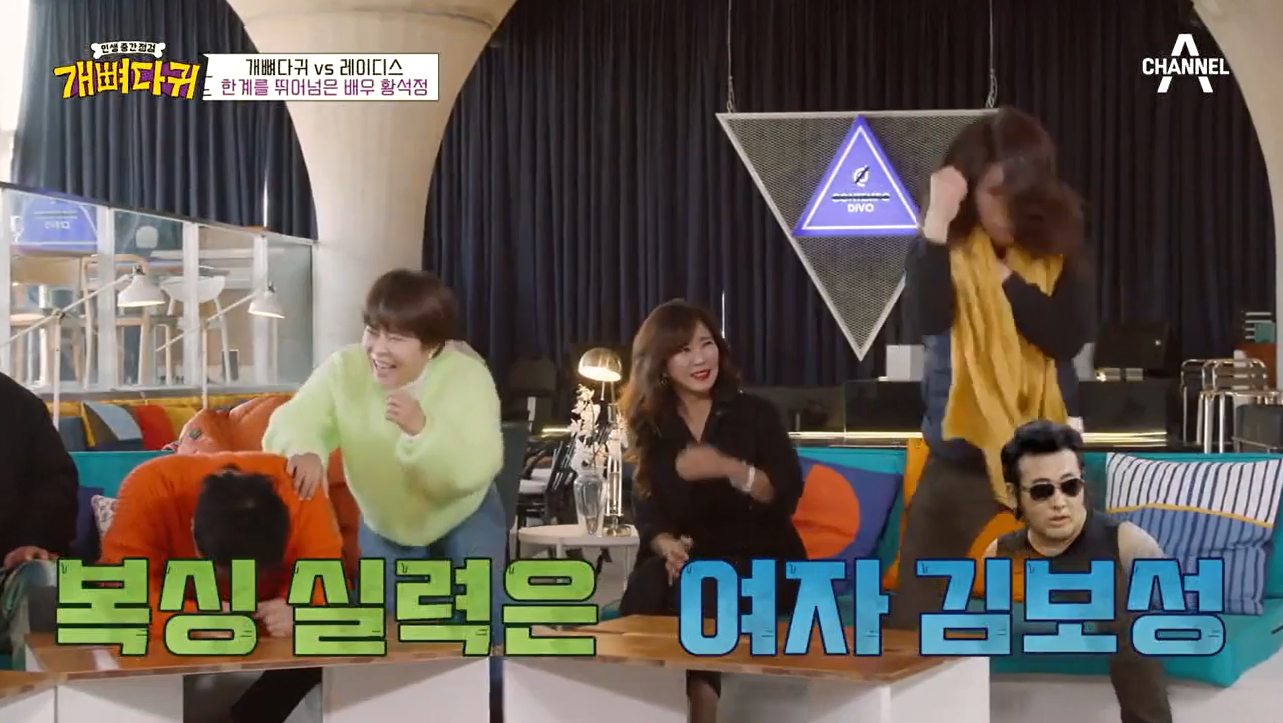 이에 기다렸다는 듯 긴 다리를 날렵하게 움직이며 주먹을 뻗은 황석정은 "사실 어릴 때부터 격투기 선수 하라는 말 많이 들었다. 자신있다"고 말해 '태보' 다이어트 창시자 조혜련을 긴장시켰다.