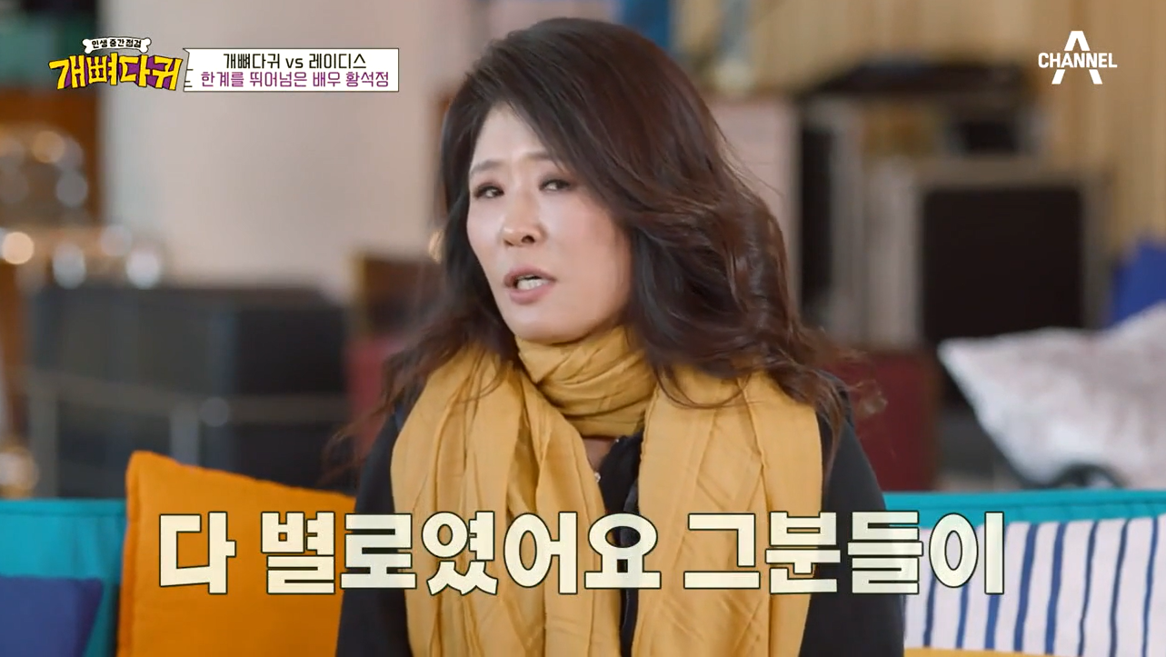 13일 방송된 만 50세 연예계 개띠들의 토크예능 채널A'개뼈다귀'에서 여자 개띠스타들이 출연한 가운데, 개띠 동갑스타 방송인 조혜련, 배우 황석정, 조은숙, 이연수 등이 '레이디스'로 함께 했다.