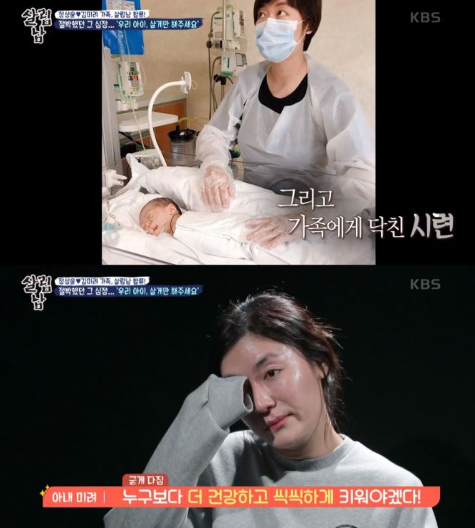 김미려는 "처음엔 받아들이지 못했다. 아이가 뱃속에 있을 때 내가 놓친 게 있나, 실수한 게 있었나라는 생각이 들었다. 제가 쓰레기가 된 기분이었다. 착하게 산다고 살았는데"라며 결국 눈물을 보였다. 하지만 그러면서도 이들 부부는 처음보다 나아진 상황에 "평범함에 더 감사하게 됐다"며 "누구보다 더 건강하고 씩씩하게 키울 것이다. 사랑이 더 커졌고 우린 똘똘 뭉칠 것"이라며 마음을 다잡았다.