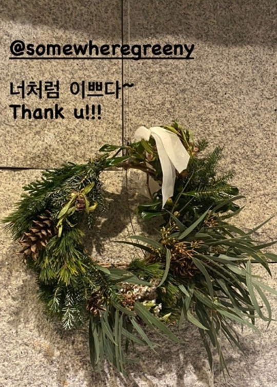 공개된 사진에는 전소니가 송혜교에게 선물한 걸로 보이는 크리스마스 리스가 담겨 있다.