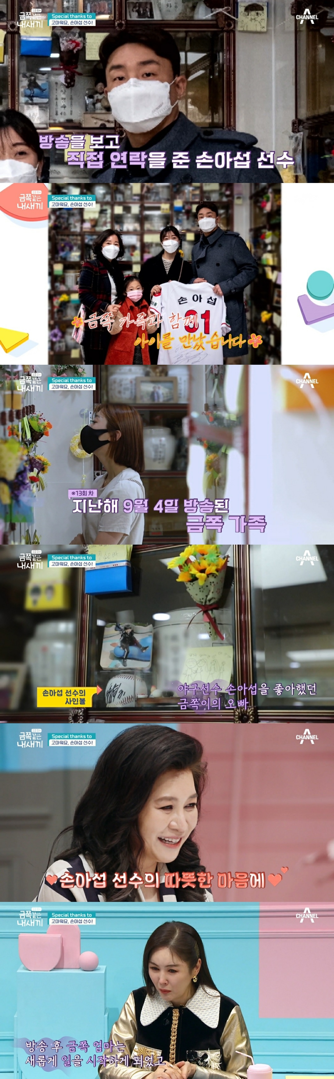 당시 방송에서는 오빠가 평소 손아섭의 팬이었다는 사실도 담겼는데, 손아섭이 이를 보고 제작진에게 직접 연락을 주면서 금쪽이 가족과의 만남이 성사됐다고. 손아섭이 금쪽이 가족과 납골당에서 함께 사진을 찍은 모습, 손아섭의 사인이 담긴 야구공이 유골함 옆에 놓여져 있는 사진도 공개됐다.